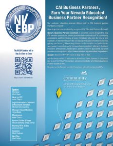Join us to learn how to work with Nevada associations and also attend the CAI national educated business partner prior.